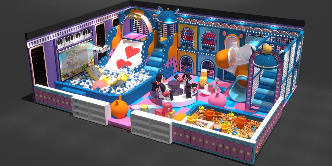 Ví dụ, một sân chơi trong nhà được xây dựng cho trẻ mới biết đi và trẻ mẫu giáo có thể được đặt trong một không gian rộng 200 mét vuông khá dễ dàng, bao gồm các khu vực cho cha mẹ thư giãn, quầy bar bán đồ ăn nhanh và các tiện nghi khác.