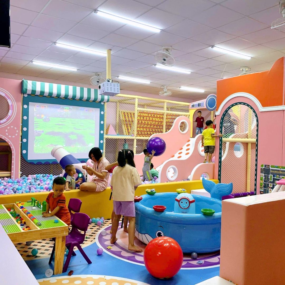 Khu vui chơi được thiết kế riêng để phù hợp nhất với yêu cầu khách hàng, đặc biệt với bể câu cá nhỏ ở vị trí trung tâm, mang đến những trải nghiệm vui chơi mới cho các bé.