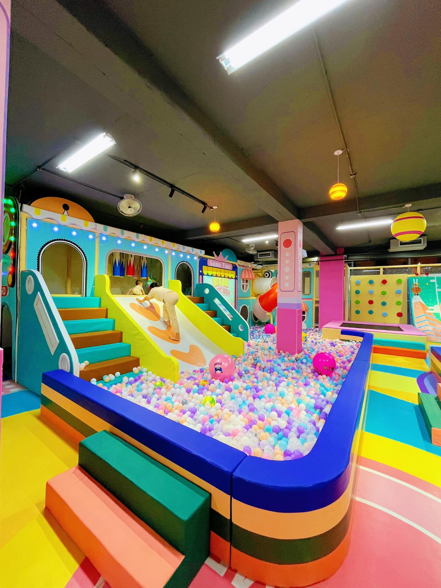 Nằm trong khuôn viên thư thái với bóng cây xanh và hồ cá Koi xinh động của Bờm Garden Coffee, khu vui chơi Bờm Kids được tích hợp đầy đủ các phân khu vui chơi hấp dẫn để xây dựng tổ hợp Bé vui chơi - Ba mẹ nghỉ ngơi.