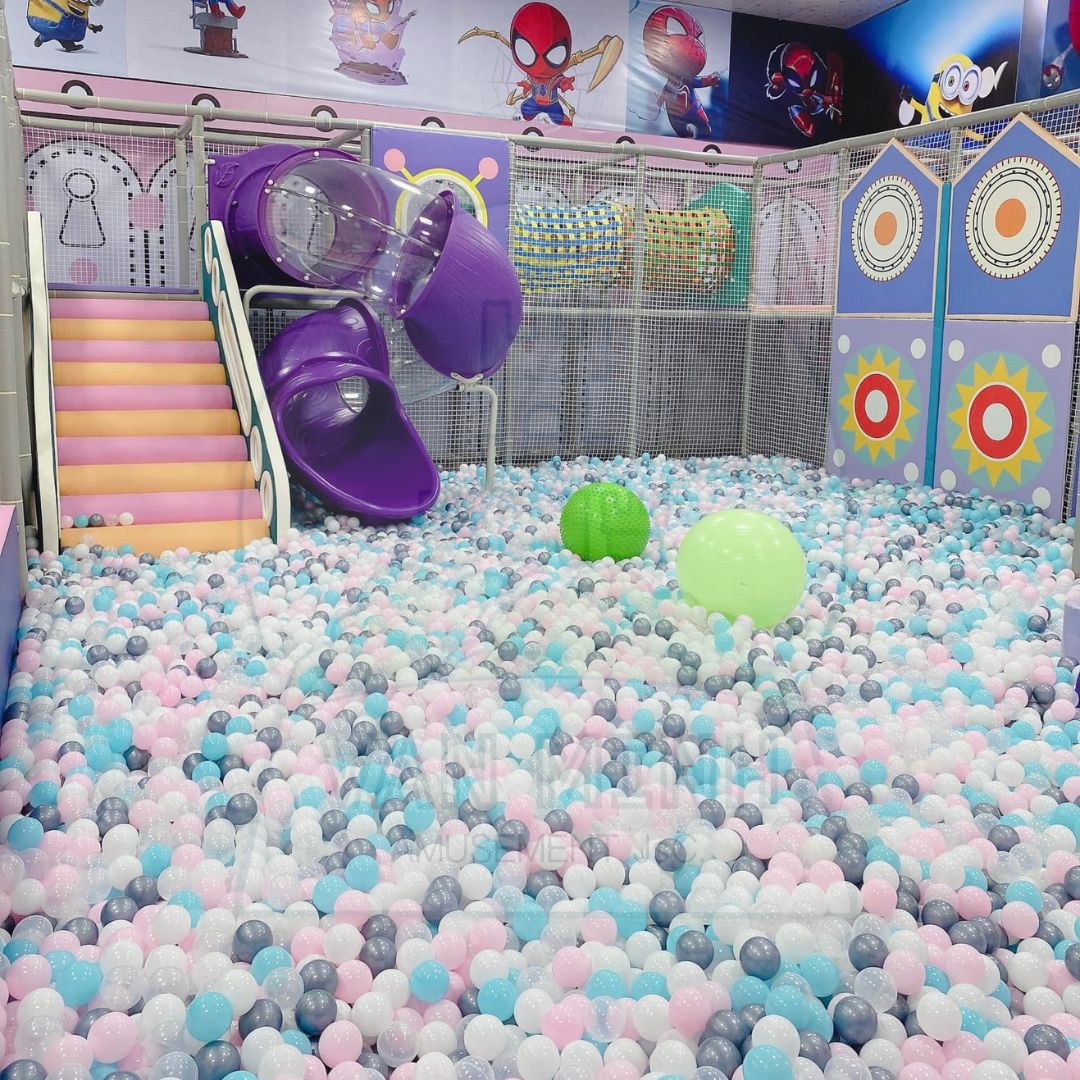 Khu vực bể bóng rộng rãi, tạo không gian vui chơi thoải mái cho trẻ em.