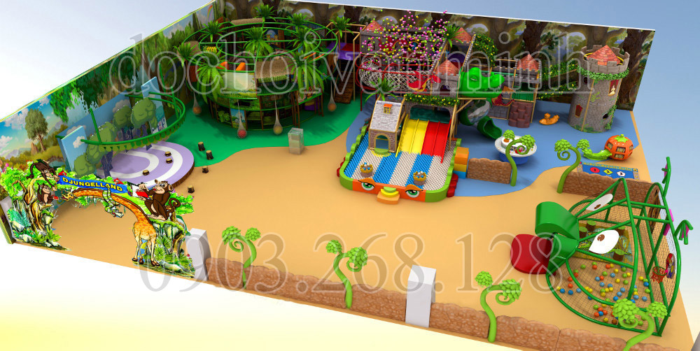 Khu vui chơi nhà liên hoàn trong nhà có đủ loại trò chơi cho trẻ từ 3-12 tuổi